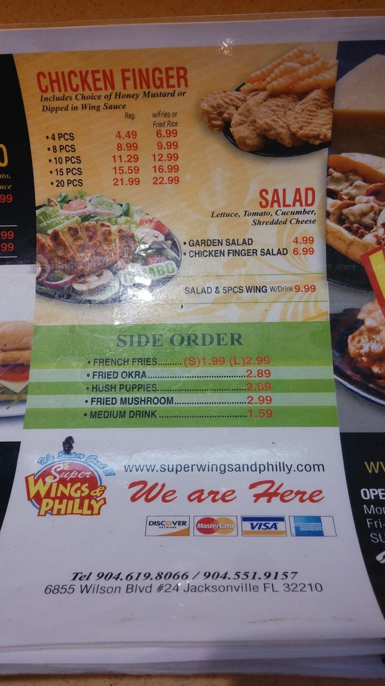 Introducing the menu at Super Wings & Philly, a delightful spot in Jacksonville, FL, where flavor reigns supreme! This vibrant eatery specializes in burgers, chicken wings, and sandwiches, making it a go-to destination for food lovers.